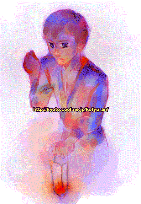 薄暗い階段をそろそろ下がる小僧さん、みたいな絵を描きたかったんですが。 背景ないんで何がなんだかわかりませんね。タブで直描き。 2006年11月5日